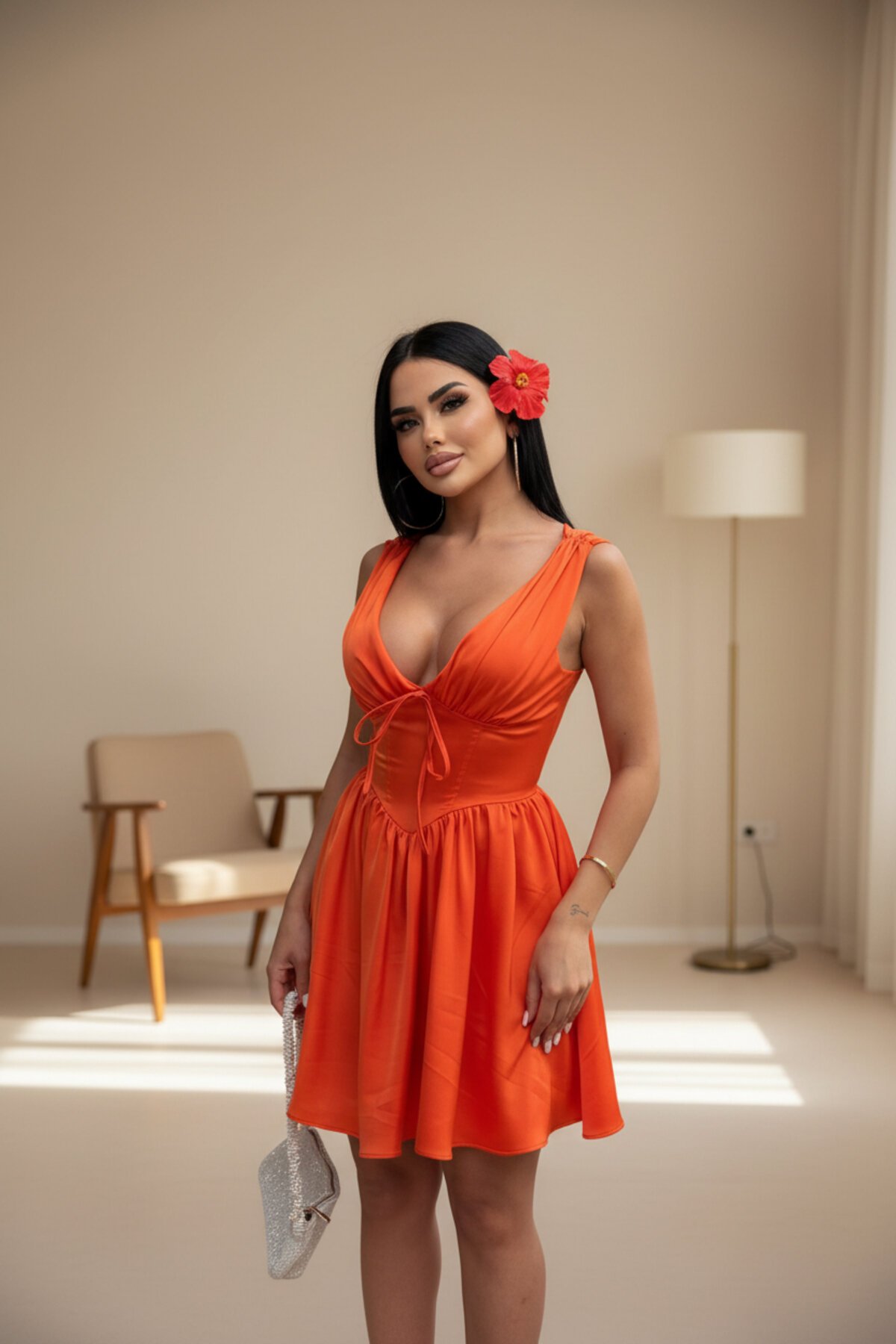 نقدم لكِ من MegaButik أجمل تشكيلة فساتين السهرة والملابس العصرية. اكتشفي فستان الستان القصير الرائع هذا، مصمم خصيصاً ليمنحك إطلالة جريئة وجذابة. يتميز بتفاصيل الكورسيه العصرية وشورت مدمج لراحة إضافية. هذا الفستان البرتقالي اللامع، المتوفر ضمن مجموعة VİSKALİ، مثالي للحفلات المسائية والمناسبات الخاصة التي تتطلب التميز.