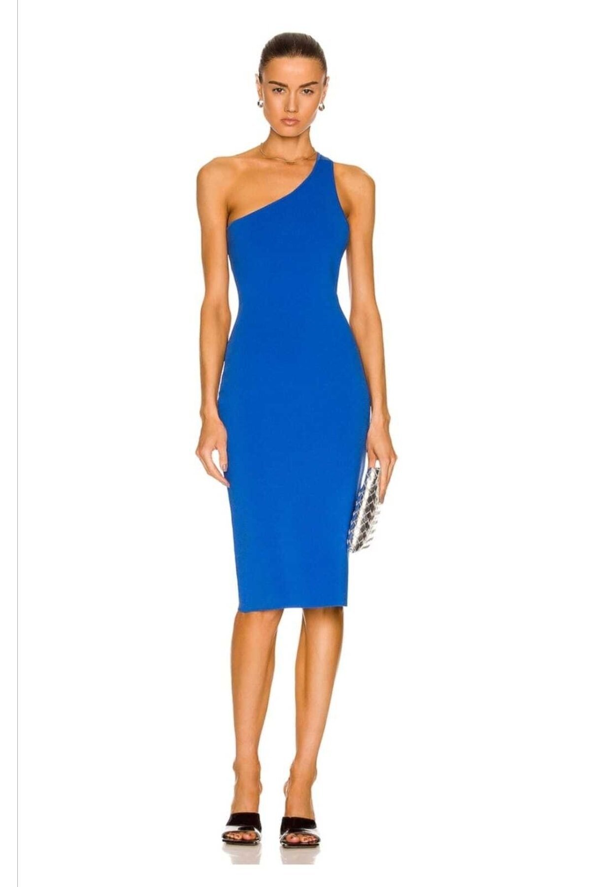 Zagrepفستان ميدي بكتف واحد من حرير الجيرسي باللون الأزرق الكوبالت