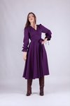 • فستان ميدي بأكمام طويلة ياقة متقاطعة بنفسجي