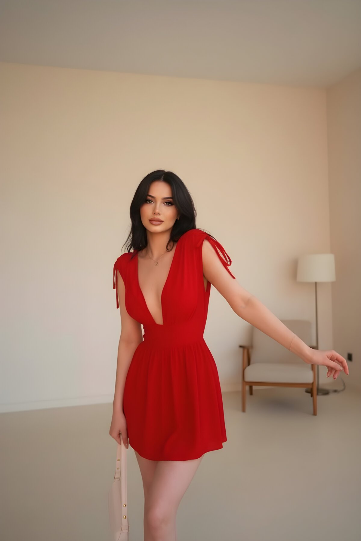 RAWEA FASHİONفستان ميني أحمر قصير جذاب بحمالات خيطية وشورت داخلي