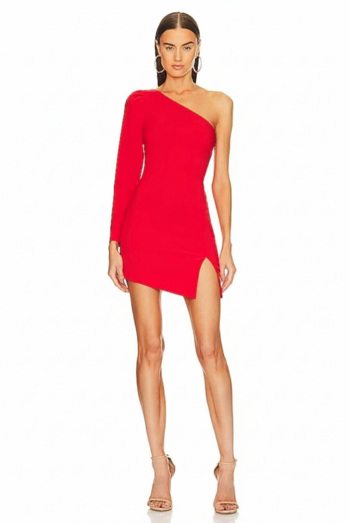 Make an unforgettable entrance in the exclusive Zagrep collection at MegaButik. This stunning red mini silk jersey evening dress is designed with a dramatic one-shoulder cut, a statement padded balloon sleeve, and a sexy side slit. Perfect for parties, cocktails, or special occasions where you need maximum impact and sophisticated style.