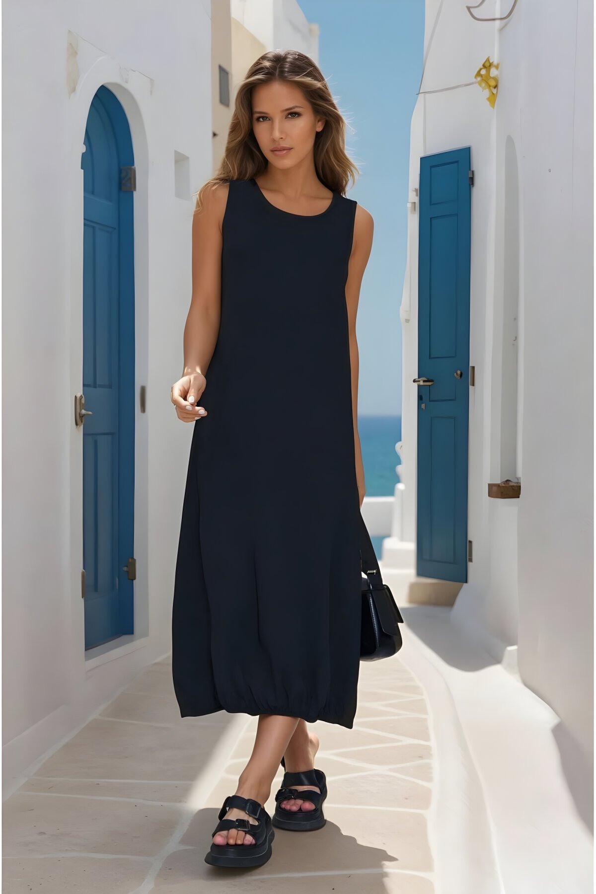 Discover the perfect addition to your warm-weather wardrobe with this stylish Black Midi Airobin Dress, exclusively available at MegaButik. Designed by Pasaklı Giyim, this beautiful summer dress features a comfortable, breathable Airobin fabric and an eye-catching elasticated hem, ensuring both a perfect fit and high fashion for any casual or daytime occasion. Shop the latest trendy designs now!