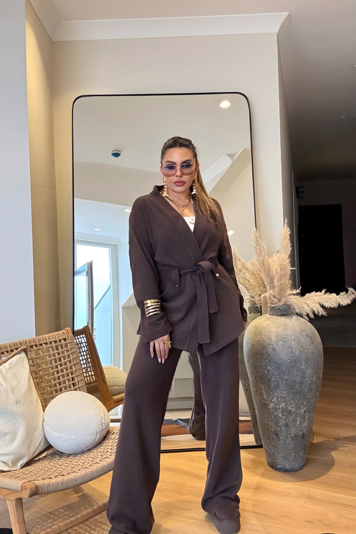 Sohotique By PSoft Touch Two-Piece Set in Dark Coffee, Featuring a Belted Design