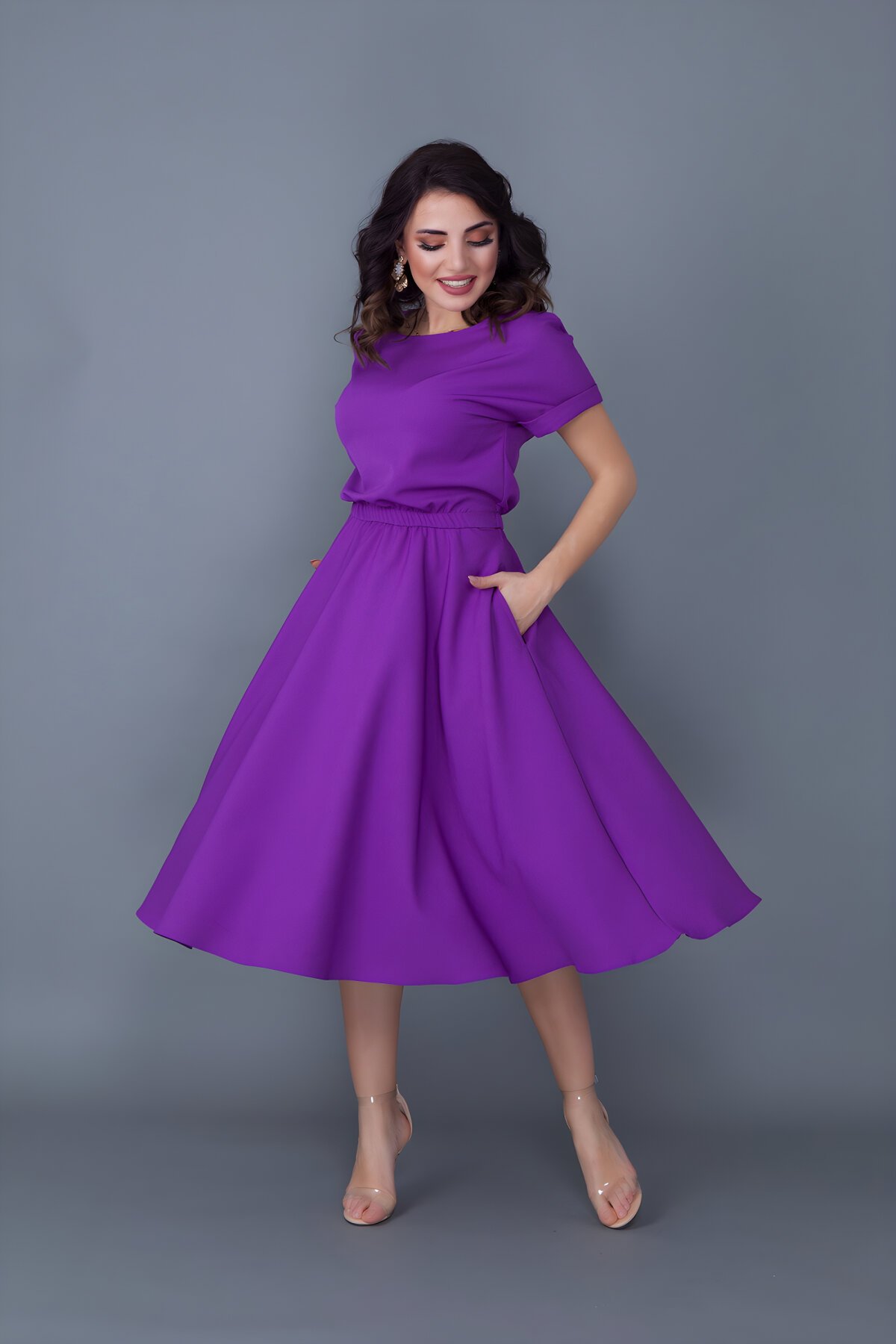 MegaButik'in en yeni trendlerini yansıtan, Mor Beli Lastikli Cepli Yarasa Kol Midi Elbise ile hem şık hem de rahat hissedin. Esnek yapısı ve cepli oluşu günlük kullanım için idealdir. Bidoluelbise kalitesiyle sunulan bu rahat kesim midi elbiseyi kaçırmayın. Tüm vücut tiplerine uygun bu parça ile gardırobunuzu yenileyin! Hemen keşfedin.
