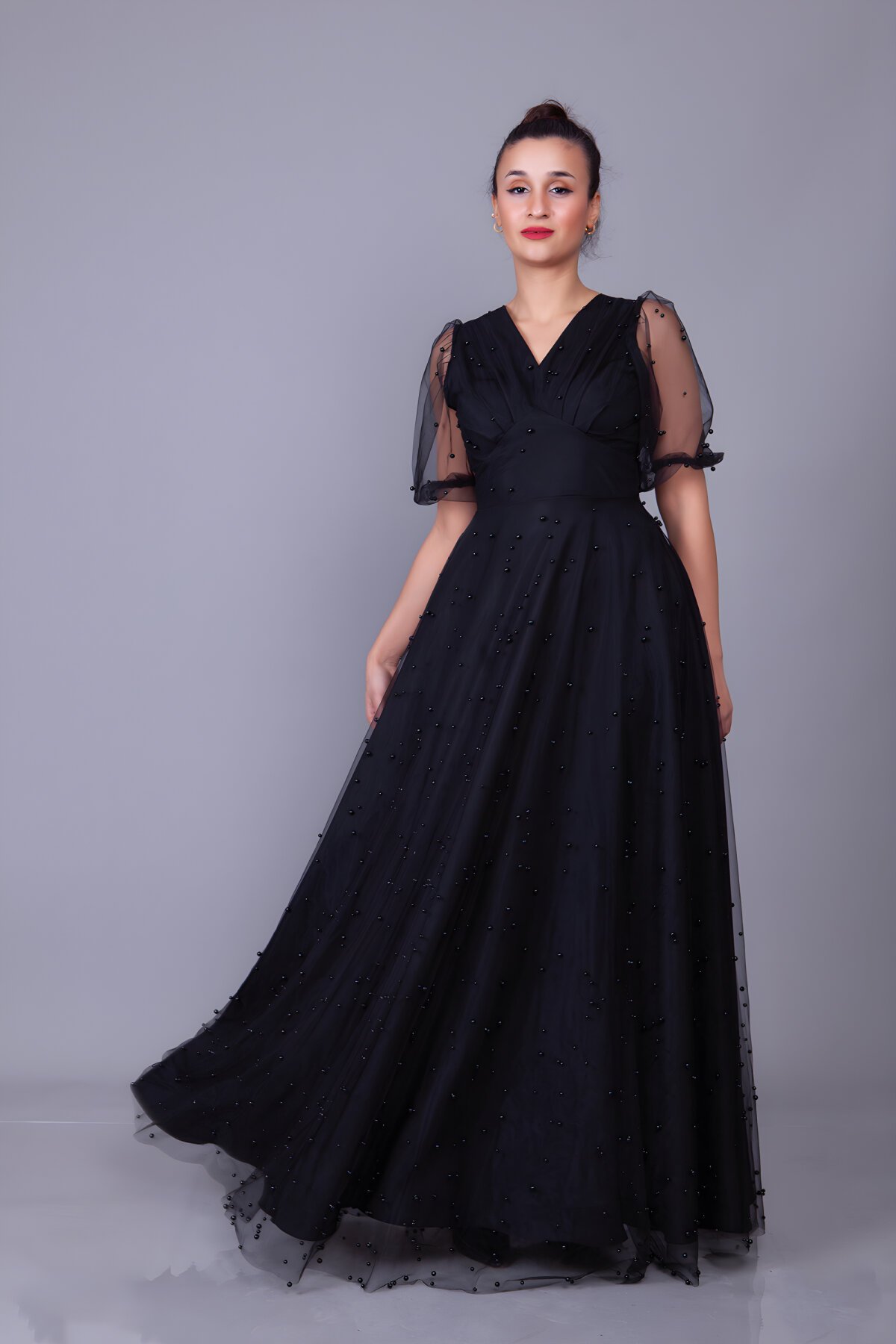 Zarafetiyle göz kamaştıran Bidoluelbise imzalı siyah uzun inci tül kaplamalı V yaka kısa balon kol abiye elbise, MegaButik koleksiyonunda sizleri bekliyor. Özel davetlerde, düğünlerde ve balolarda şıklığınızı tamamlayacak bu eşsiz parça, modern kesimi ve zarif inci detaylarıyla stilinize asalet katmak için tasarlandı. Şimdi keşfedin ve gecenin yıldızı olun.