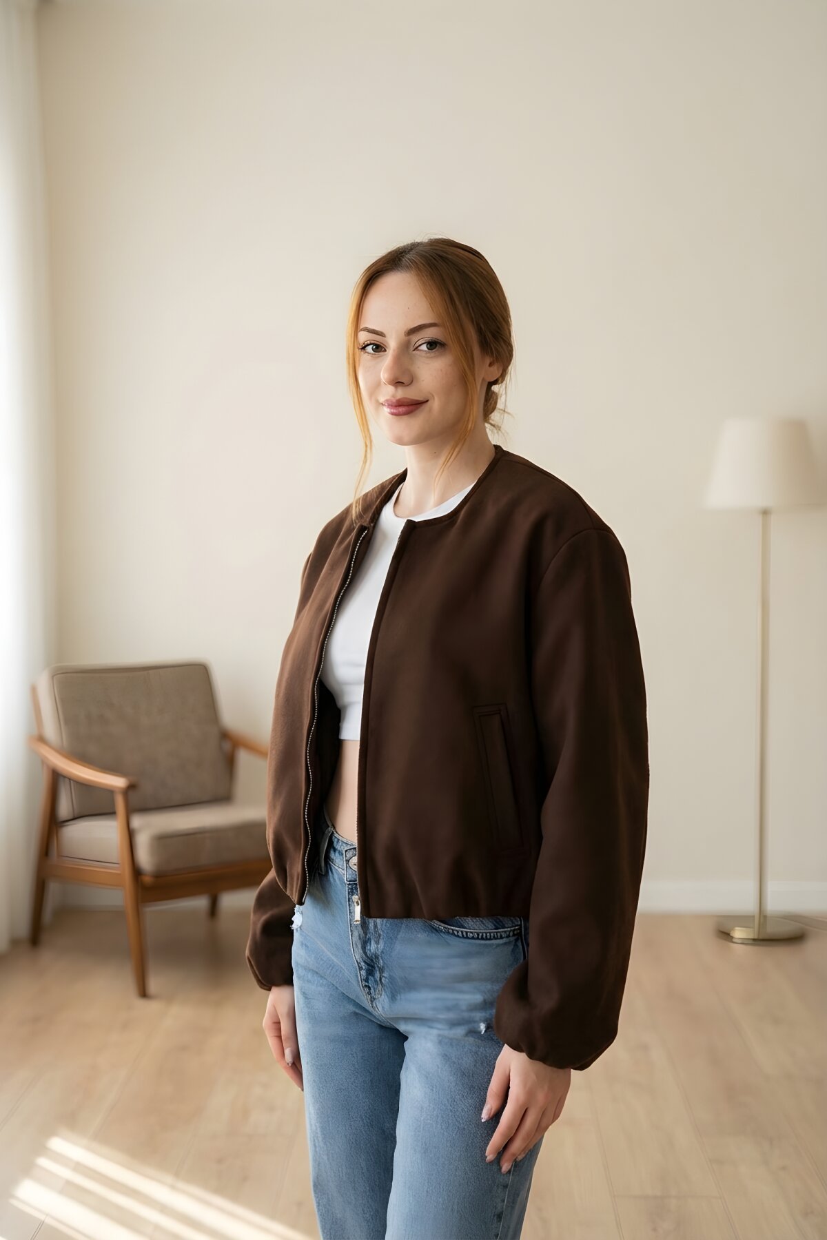 MOZENAPremium Kahverengi Kaşe Bomber Ceket