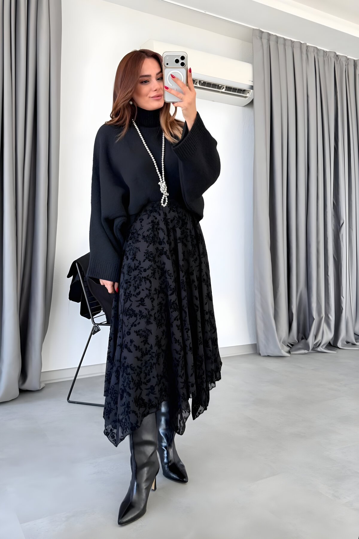Zarafetin Asimetrik Yorumu: Nakışlı Siyah Midi Etek