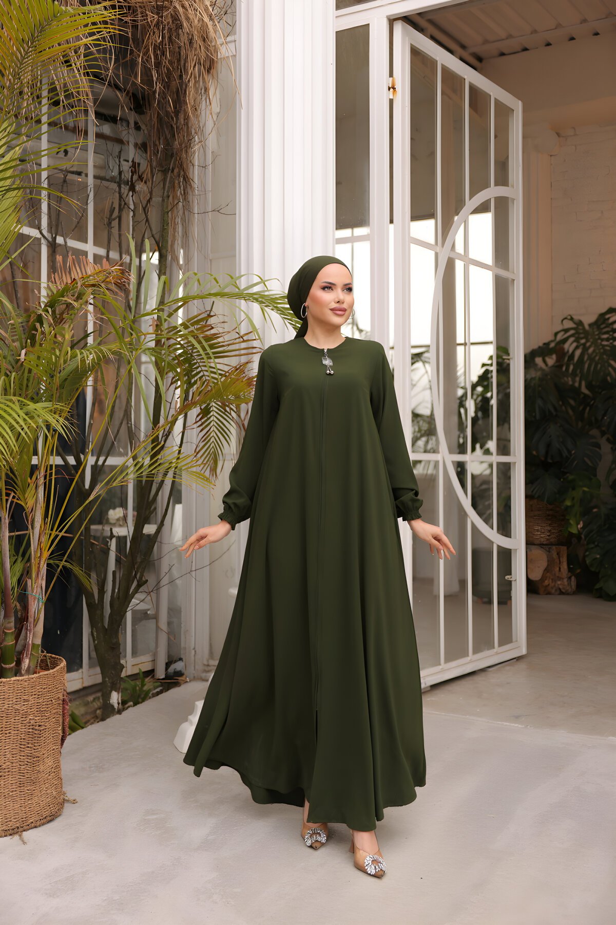 MegaButik koleksiyonunun en şık parçalarından biri olan Nissra marka Haki Mevlana Ferace, hem konforu hem de zarafeti bir arada sunuyor. Geniş kesimi ve kaliteli kumaşıyla günlük kullanımda rahatlık sağlarken, haki rengin asaletini tarzınıza yansıtıyor. Modern tasarımıyla her mevsime uygun bu özel feraceyi hemen keşfedin.