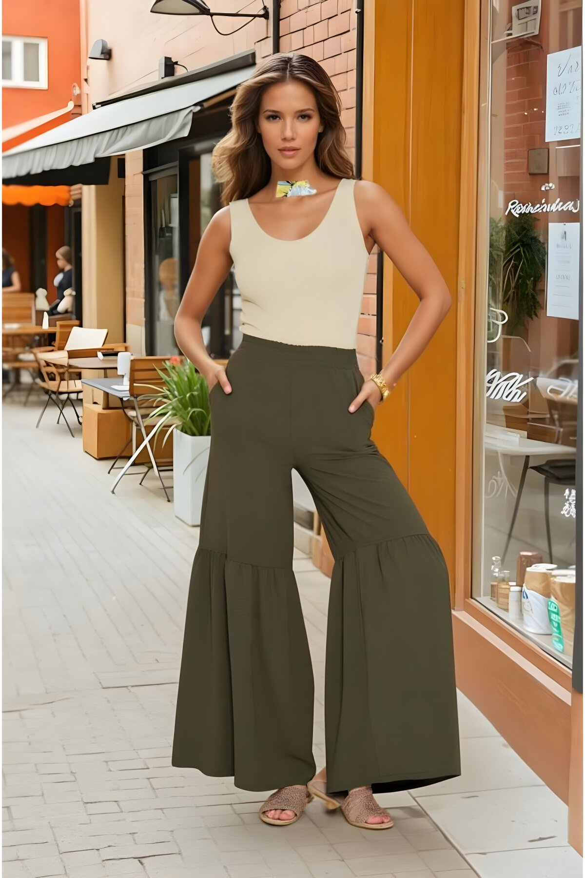MegaButik koleksiyonunun öne çıkan parçalarından biri olan Pasaklı Giyim imzalı haki pantolon, kaliteli aerobin kumaşı ve beli lastikli yapısıyla gün boyu yüksek konfor sunuyor. Paçası büzgü detaylı modern tasarımıyla dikkat çeken bu şık pantolon, hem günlük kombinlerinizde hem de özel anlarınızda gardırobunuzun en joker parçası olmaya aday. Rahatlığı ve zarafeti bir arada arayan kadınlar için ideal bir tercih.