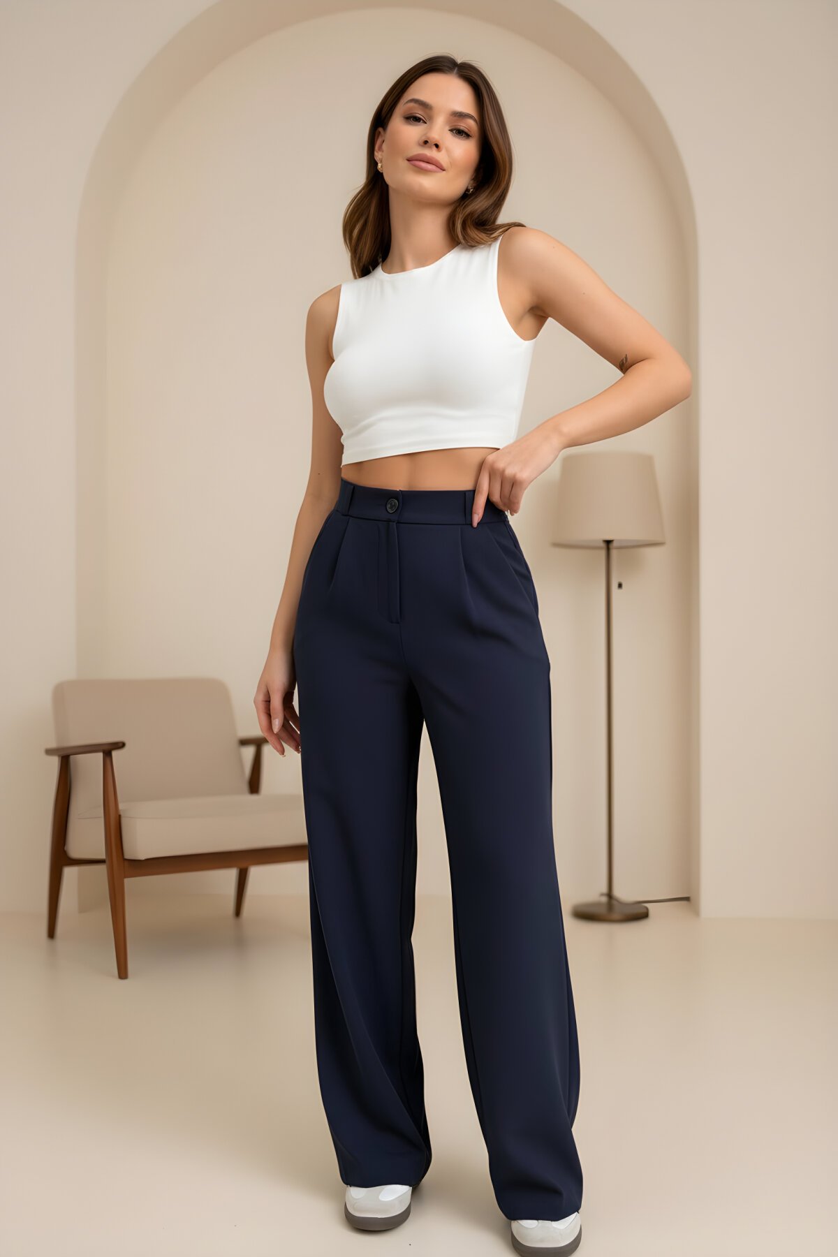 RAWEA FASHİONLacivert Arkası Lastikli Dabıl Kumaş Palazzo Pantolon