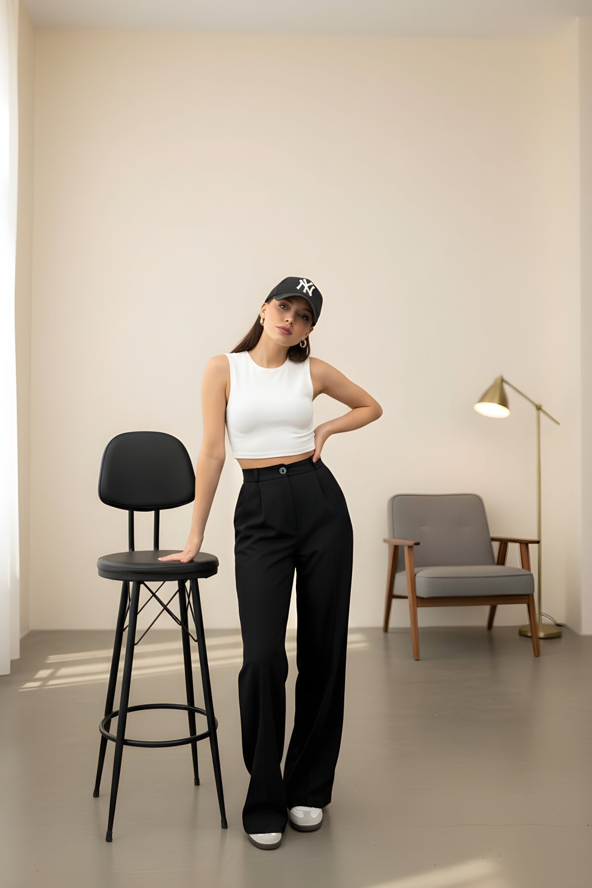 RAWEA FASHİONSiyah Palazzo Dabıl Kumaş Pantolon