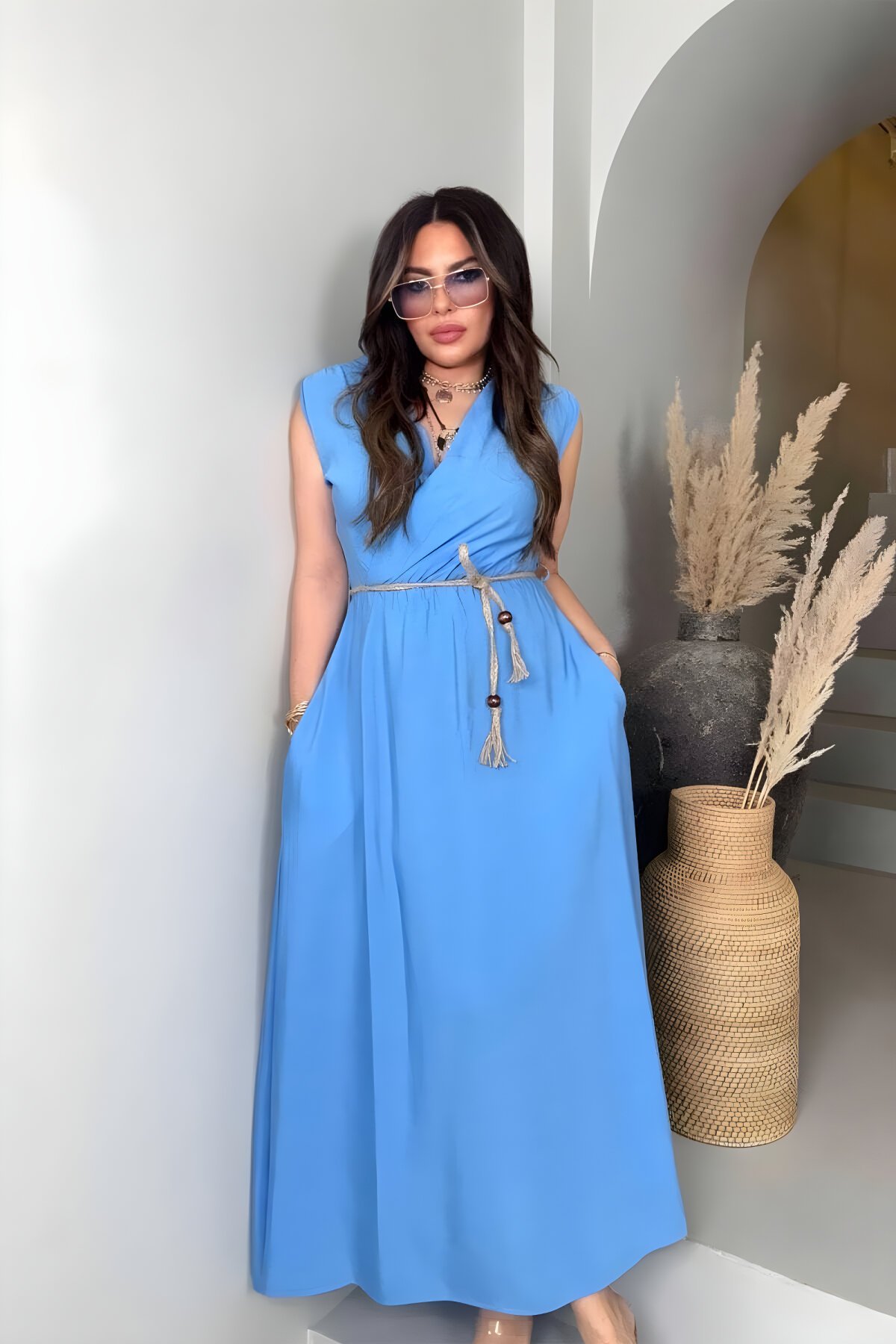 Sohotique By PKruvaze Uzun Mavi Hasır Örme İp Detaylı Elbise